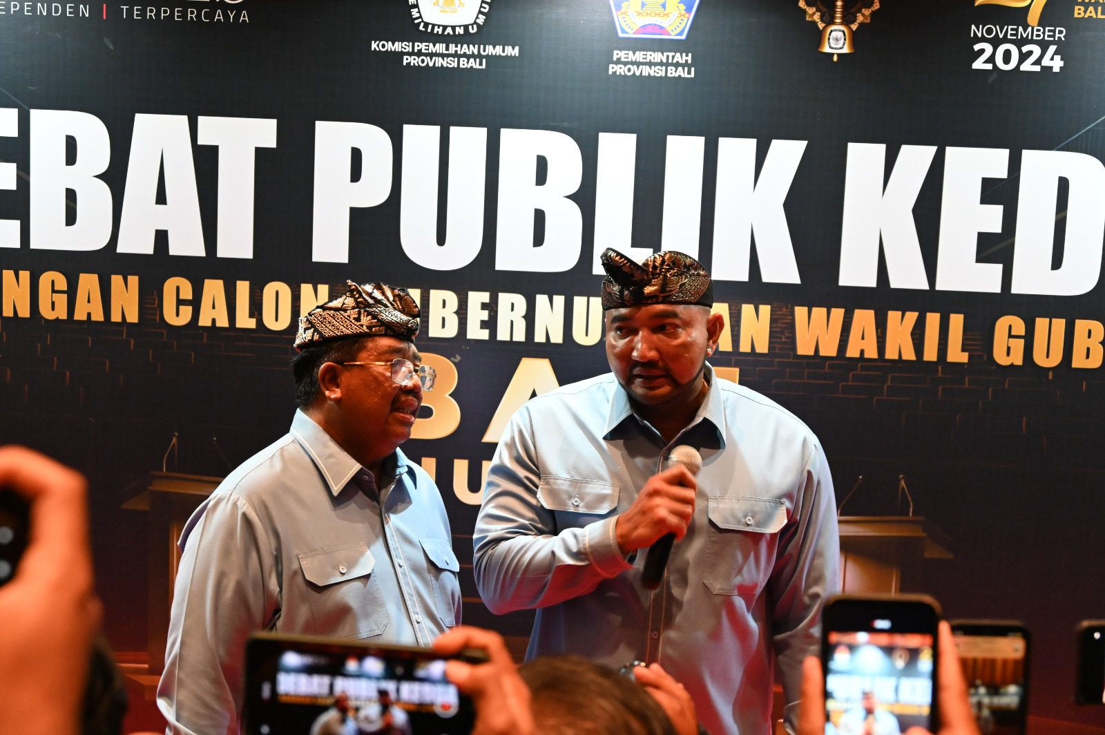 Hal tersebut disampaikan Pasangan Calon (Paslon) Made Muliawan Arya (De Gadjah) dan Putu Agus Suradnyana (PAS) atau Mulia-PAS bernomor urut 1, saat Debat Kedua Calon Gubernur dan Wakil Gubernur Bali di The Meru, Sanur, Denpasar, Sabtu, 9 November 2024.